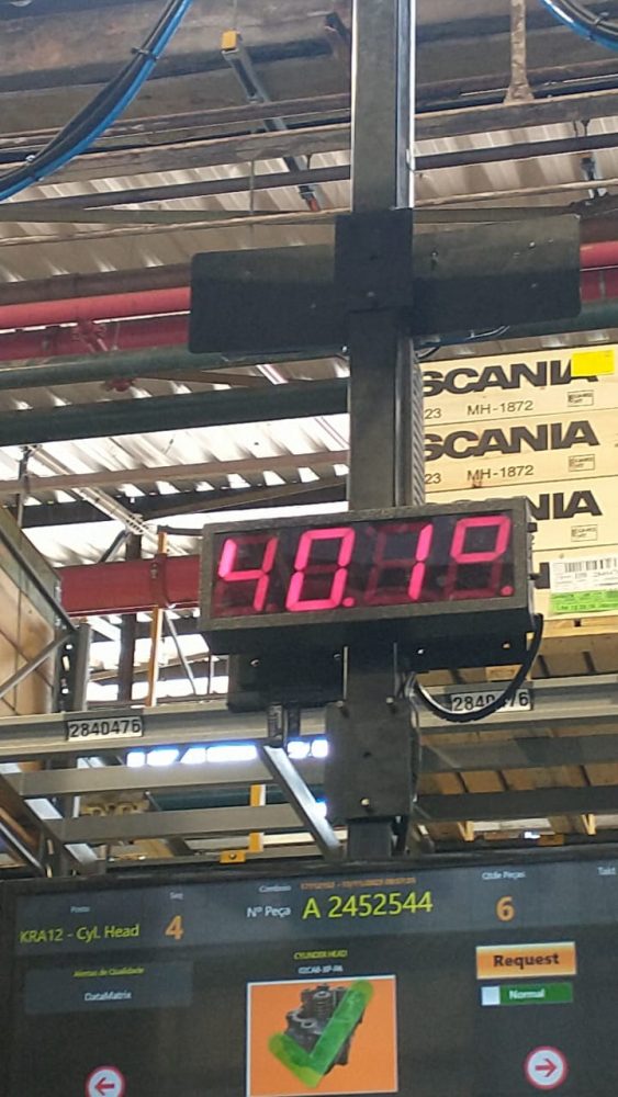 Errata: versão anterior da reportagem indicava, erroneamente, que os 40,1°C registrados na fábrica da Scania estavam acima do permitido pela Norma Regulamentadora 15. Porém, os limites de temperatura indicados pela norma não levam em conta apenas os dados de termômetros comuns, como o da imagem obtida pela Repórter Brasil. O texto foi alterado às 15h do dia 18 de janeiro de 2024.