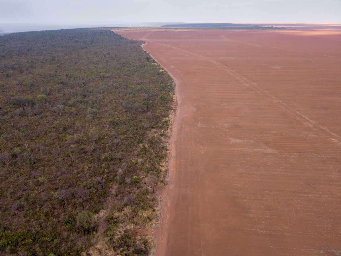 O chapadão onde as famílias da comunidade plantavam e caçavam é uma imensidão de terra batida e deserta. Do bioma natural do cerrado, restou pouco. "Não sobrou um só pau para passarinho sentar. Se o bicho quiser descansar, tem que ficar de pé", diz Cipriano Batista Gomes, 65 anos, sobre a vida selvagem que desapareceu. Antes, as famílias complementavam as refeições - à base de arroz, feijão e macarrão - com carne de caça. Hoje não. Parte da culpa por devastar o cerrado nativo recai sobre a empresa.