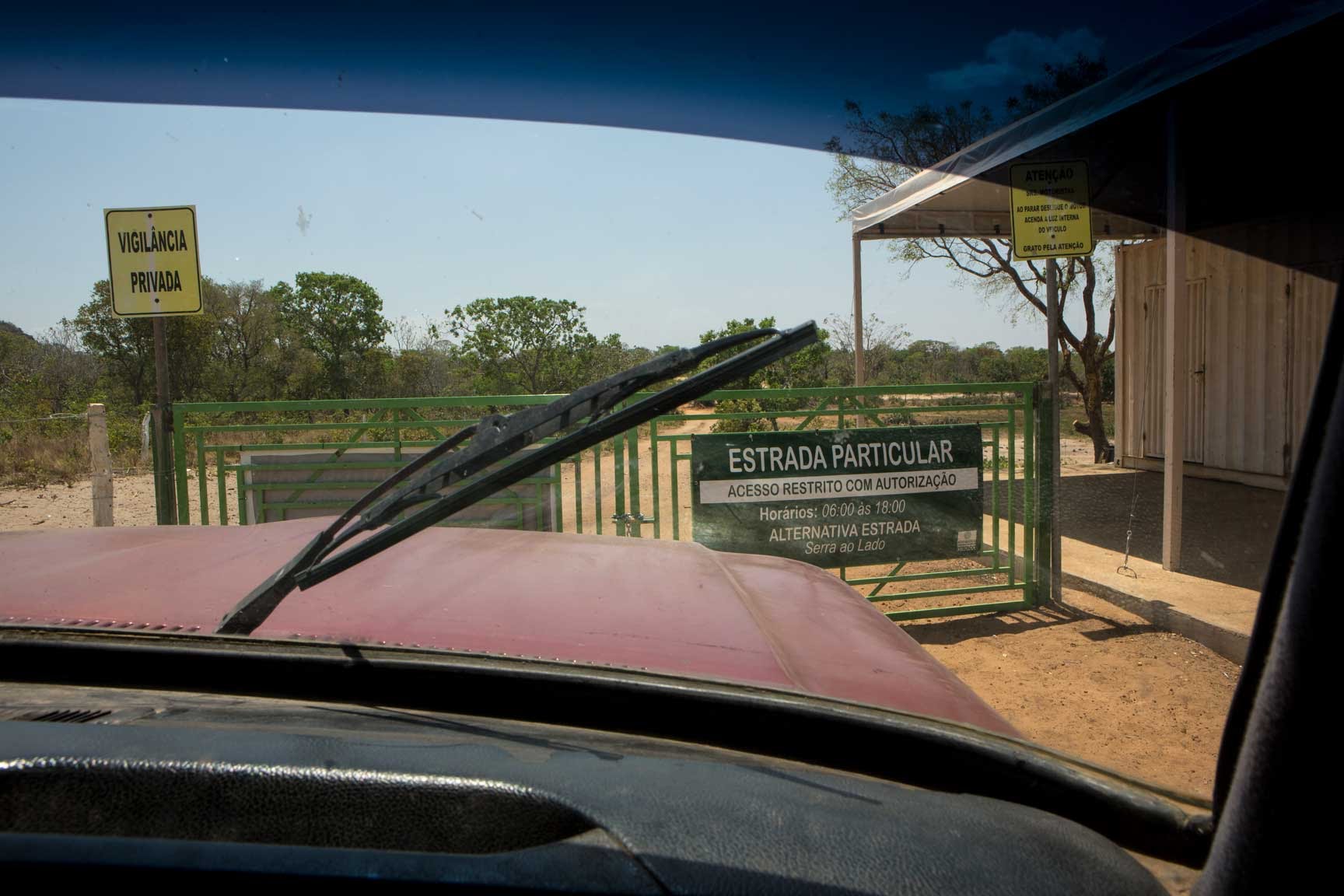 Funcionários da Estrondo fecharam estradas municipais sem autorização judicial e sem que o prefeito de Formosa, ciente das violações, segundo os moradores, sequer se manifestasse. Os relatos foram registrados em boletins de ocorrência e nas atas de audiências e reuniões realizadas no Ministério Público Estadual. Depois, abriram novas estradas com guaritas -- que ficam ao lado de portões de ferro trancados com cadeado. Hoje, são sete portões de controle -- outros dois estão em construção. Seguranças, armados e fardados, se revezam na “portaria". Procurada, a Estrela Guia não se manifestou.