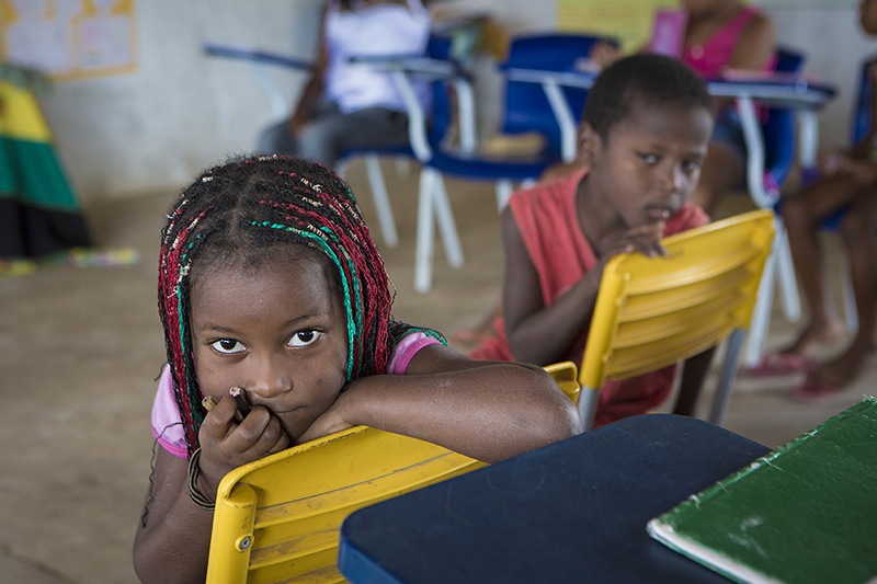 Embora estejam bem amparados dentro da escola, fora dela as crianças e os adolescentes da comunidade enfrentam as ameaças do trabalho infantil e análogo ao de escravo. No próximo capítulo, saiba como meninas são levadas para trabalhar sem receber como domésticas nas grandes cidades, enquanto os meninos estão sujeitos à atividade pesada de carregar caminhões de areia dentro do próprio quilombo.