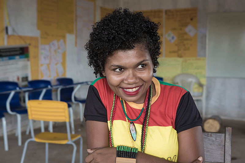 “Eu já quis sair de Nazaré, mas agora não quero mais. Me sinto bem na escola e perto da minha família”, diz Karliane Kelly Silva, de 14 anos, em sinal de resistência